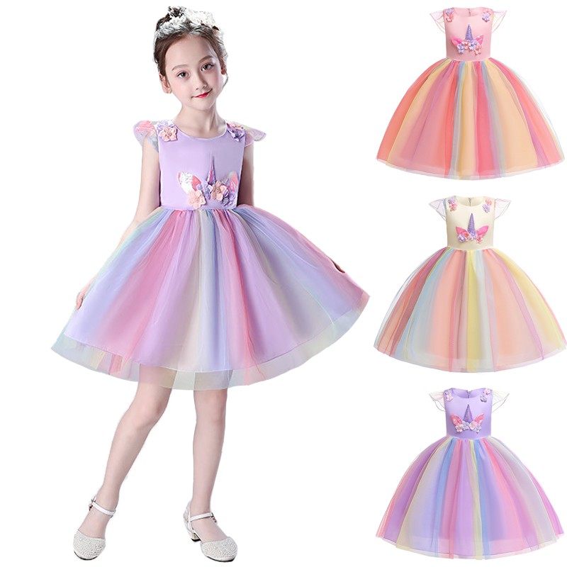 Girls Dress Unicorn Party Dress Kids Dresses Costumes Children Clothing Clothes Colorful Princess Dress Girl Shopee Malaysia